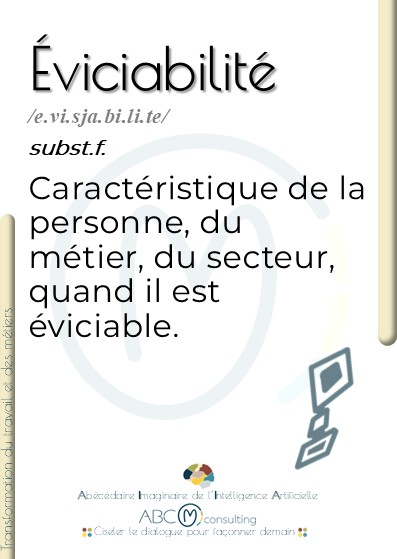 substant.f. État ou condition d’une personne, d’un métier ou d’un secteur possiblement éviciable, et donc susceptible d’être évincé par l’intelligence artificielle sans préparation ni accompagnement.